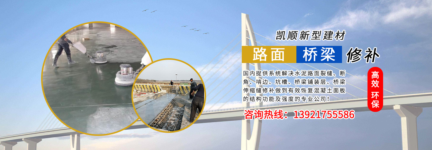 江蘇凱順新型建材有限公司是國內(nèi)提供系統(tǒng)解決水泥路面裂縫、斷角、啃邊、坑槽、橋梁鋪裝層、橋梁伸縮縫修補做到有效恢復混凝土面板的結(jié)構(gòu)功能及強度的專業(yè)公司!為市政工程、高速、國道、省道、縣鄉(xiāng)道路的改造及大修、中修等大型工程提供了快速、高效、環(huán)保、經(jīng)濟系統(tǒng)方案和技術(shù)支持!